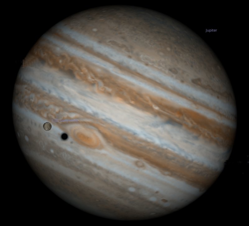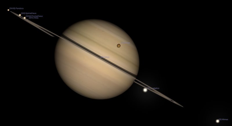 The coming week is a period of numerous "transits" where a planet's moon either passes in front of the planet or its shadow is cast on the planet's surface.....or both. We are talking about the moons of Jupiter and Saturn, so you will need a telescope to be able to witness them. |