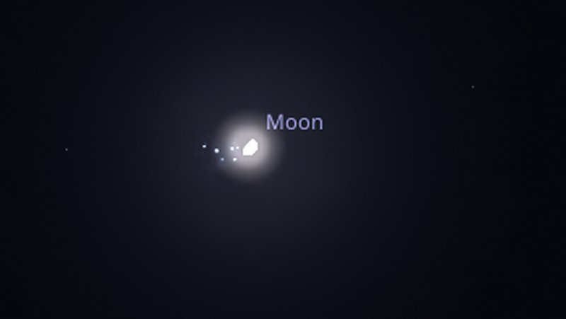 If you venture outside just as it's getting dark on 3rd, say around 5pm, the Moon will have risen above the horizon towards the north east and planet Jupiter will be just below it. As it will be close to the horizon, the Moon will look artificially very large - this is nothing to do with it being at perigee, rather that optical effect known as "Moon illusion" where your brain plays a trick on you when viewing things close to the sky line. |