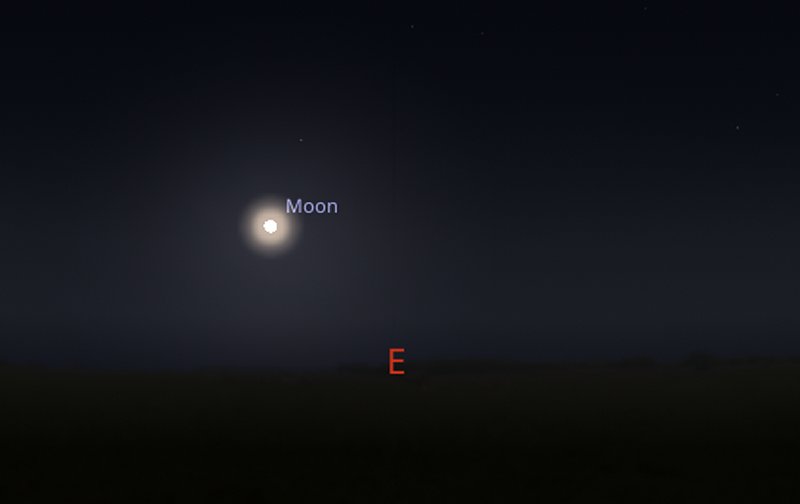If you look towards the east from around 8pm on Tuesday 3rd, you can catch the Moon rising above the horizon. |