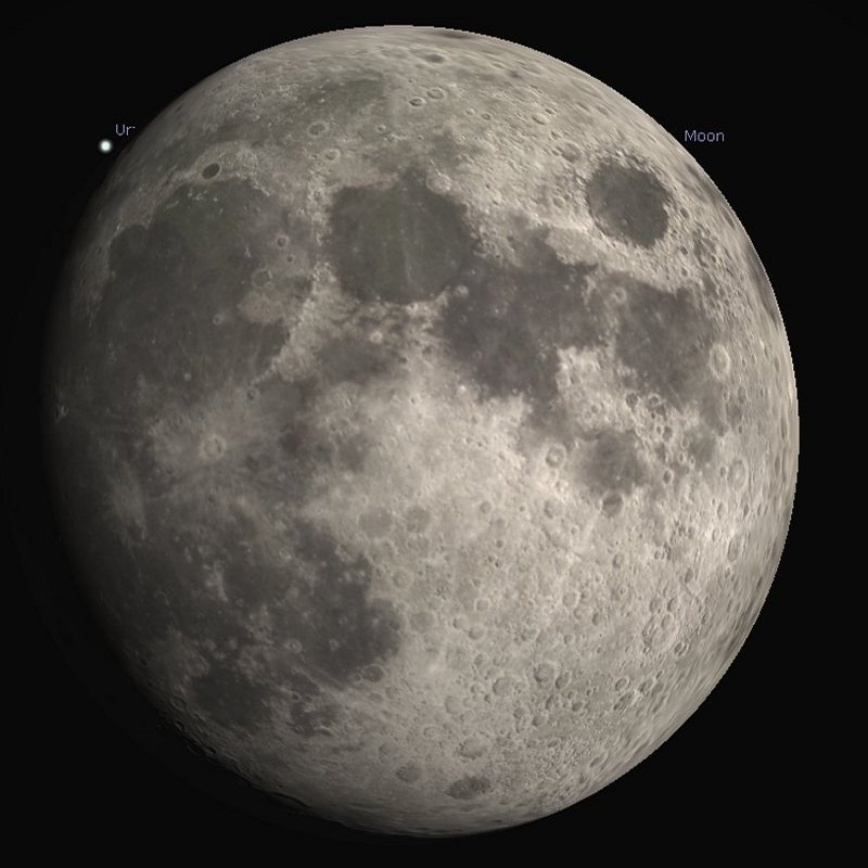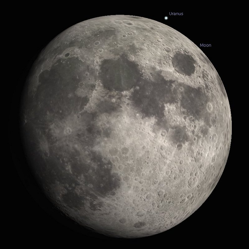 Of course, Uranus is a small target for your telescope or binoculars, currently shining at a magnitude of only +5.6 and the Moon will be almost at its full phase, so creating a lot of light pollution. |