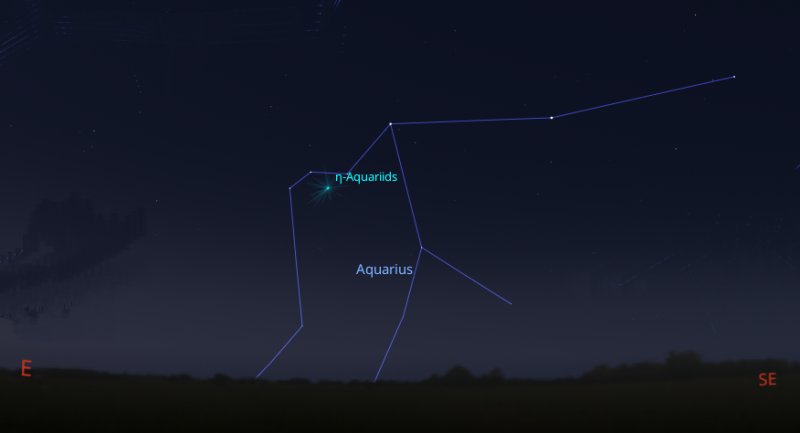At its peak, the shower can produce around 18 meteors per hour. Fortunately, the Moon will be off to the west, in the opposite part of the sky, so the light from it won't spoil your view. |