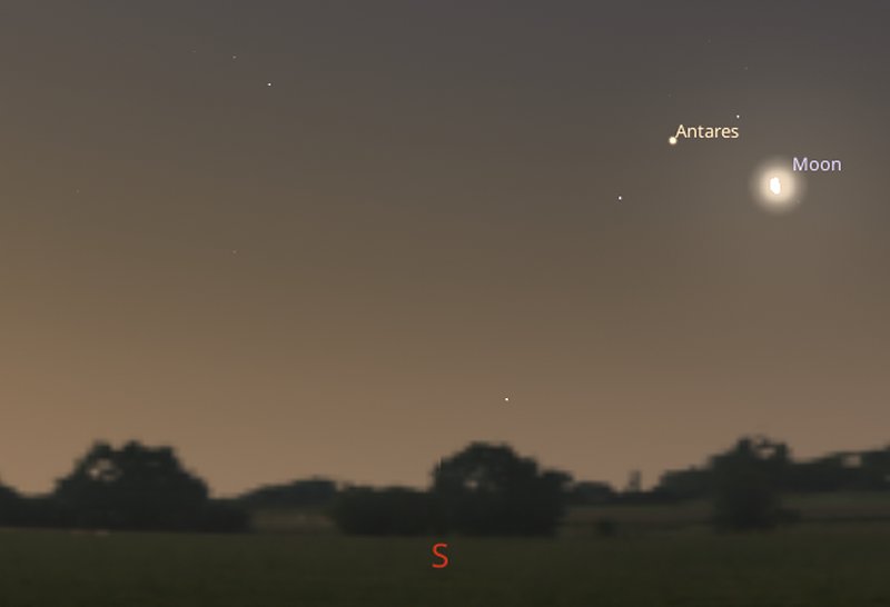 The Moon will have a magnitude of around -10.0 and Antares, being one of the brightest stars in the night sky, will be twinkling around -1.65 |
