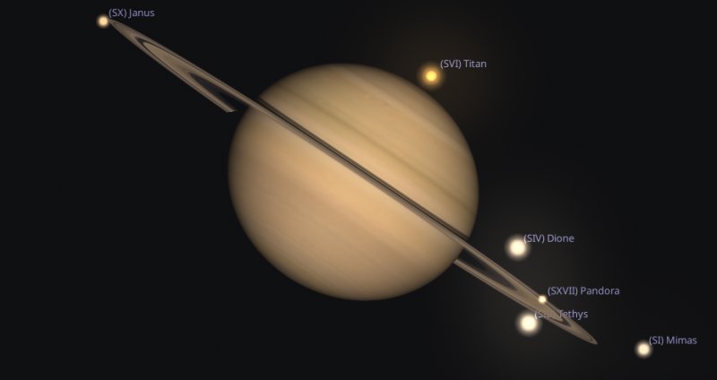 Aim your telescope towards the west south west at 8.30pm on Friday 9th and it should be possible to observe Titan transiting the surface of Saturn. At the same time, several of Saturn's other moons should be visible near its famous rings of dust. |