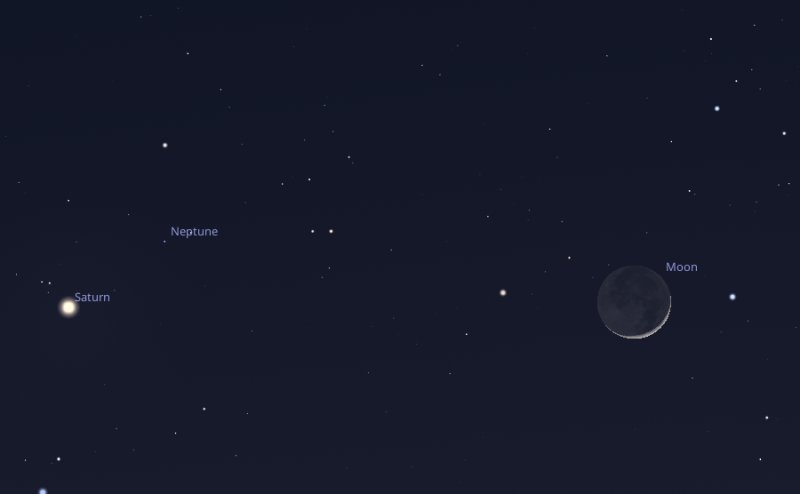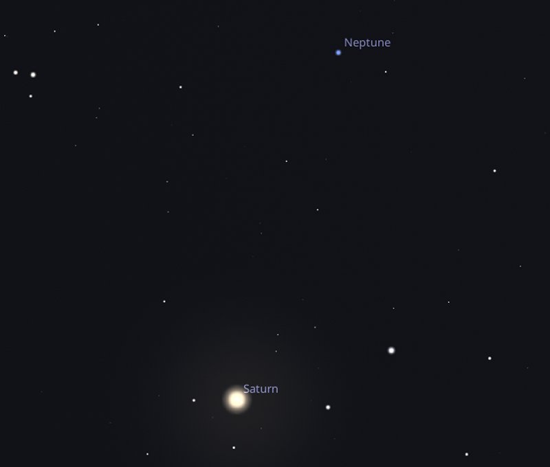 While you have that telescope out of the cupboard, point it a little above and to the right of Saturn to try and find Neptune. It is never possible to see Neptune with the naked eye and it currently has a magnitude of around +8.0 |