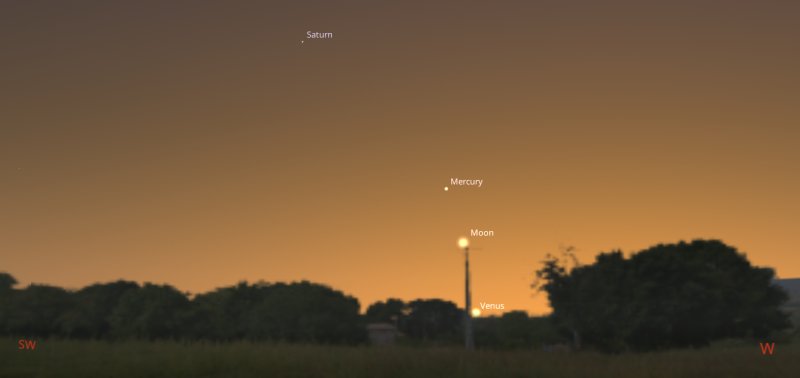 You won't see many stars at dusk, but one of the brightest stars in the night sky called Capella should already be visible directly above the Moon. |