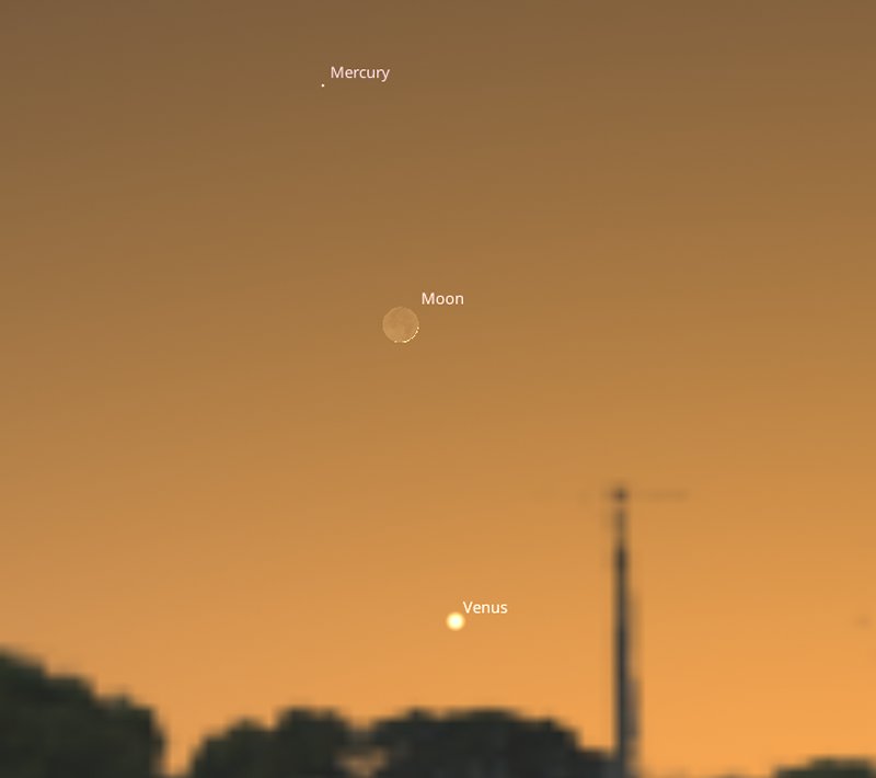 If you venture outside just as it's getting dark on 3rd, say around 5pm, the Moon will have risen above the horizon towards the north east and planet Jupiter will be just below it. As it will be close to the horizon, the Moon will look artificially very large - this is nothing to do with it being at perigee, rather that optical effect known as "Moon illusion" where your brain plays a trick on you when viewing things close to the sky line. |